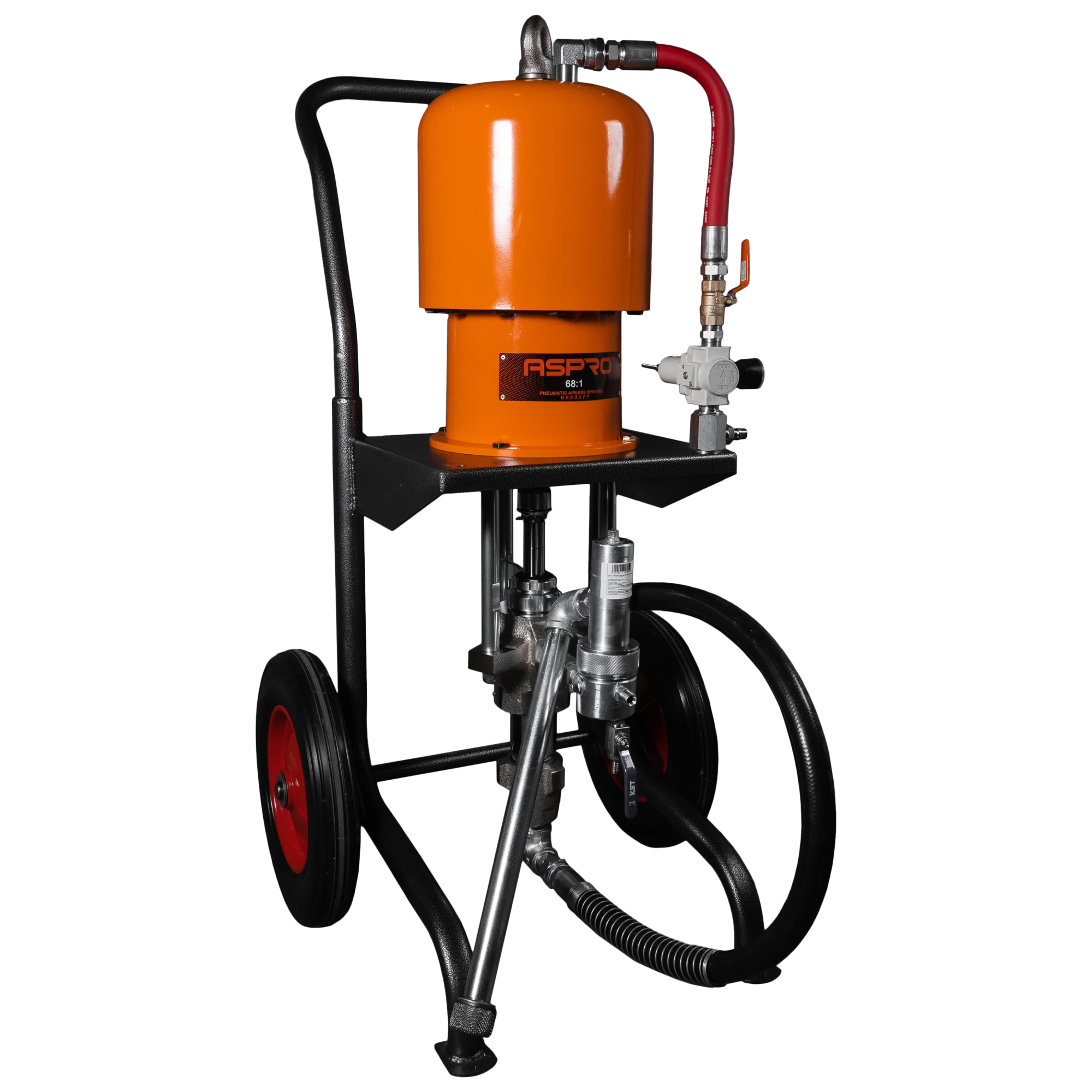 Поскольку окрасочный аппарат АСПРО-68:1 способен создавать высокое давление в системе - до 469Бар, его применение целесообразно при покраске с использованием большой длины шлангов, а именно: покраска мостов и эстакад, покраска дымовых труб, покраска фасадов многоэтажных домов и т.п.