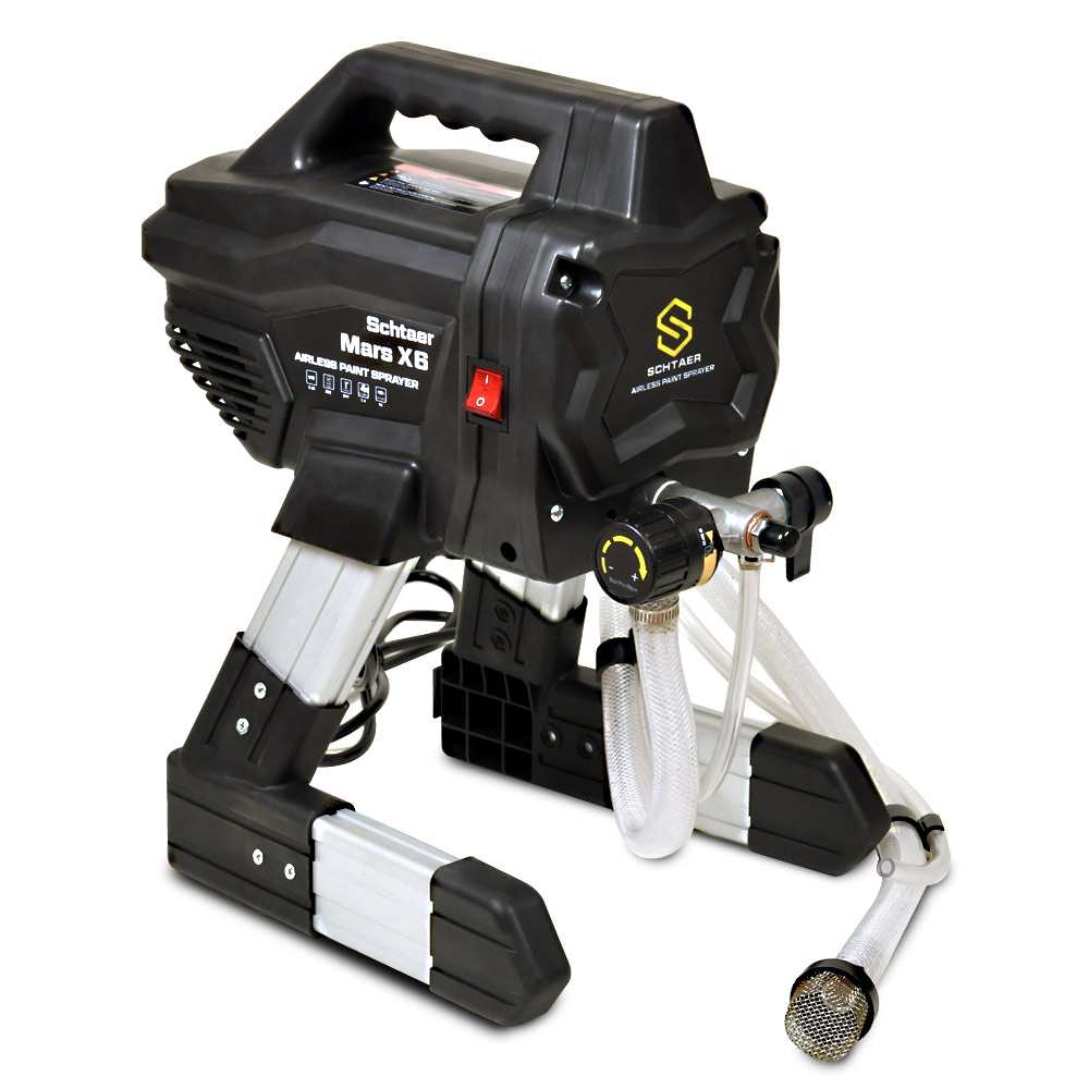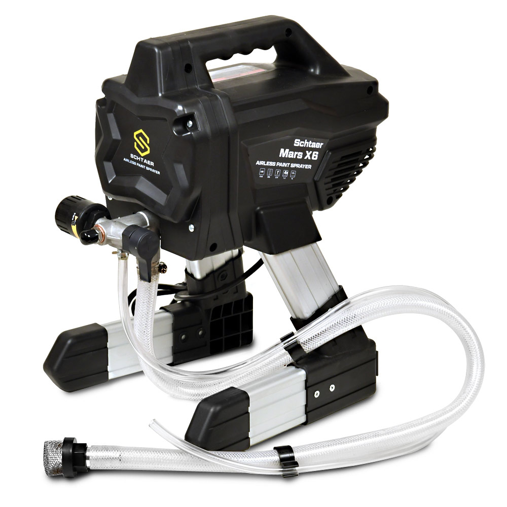 Schtaer Mars X6 - поршневой окрасочный аппарат для начального и профессионального использования при покраске небольших объектов, например, квартир, дач, коттеджей, заборов, бань и прочих строительных объектов. Окрасочный аппарат применяется с любыми стандартными красками низкой и средней вязкости, которые вы можете найти в обычном строительном магазине. Окрасочный аппарат не требует специальных знаний и навыков для покраски небольших объемов. Для его запуска в работу вам понадобится ведро с краской, 2-3 литра растворителя или воды ( в зависимости от того, чем ваша каска растворяется), электрическая розетка и 3-5 сопел с различным проходным сечением и шириной факела.