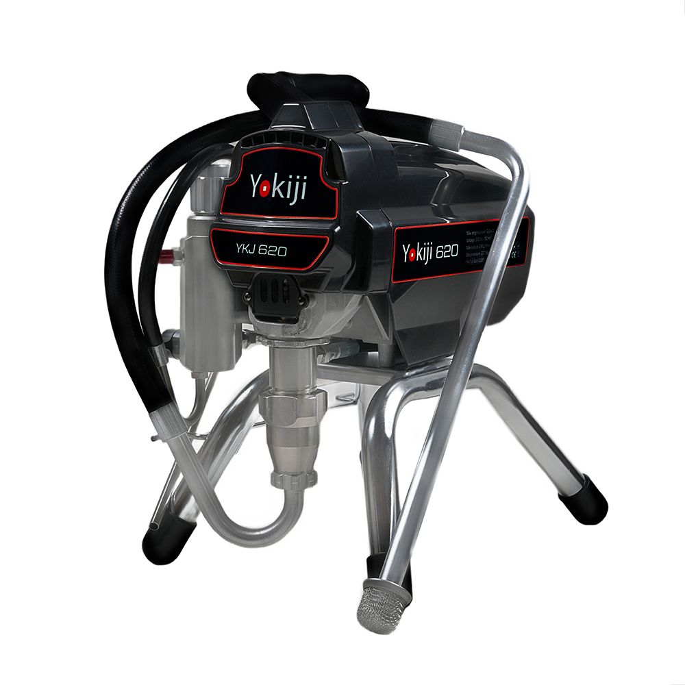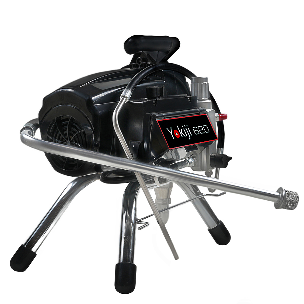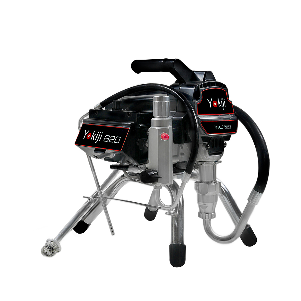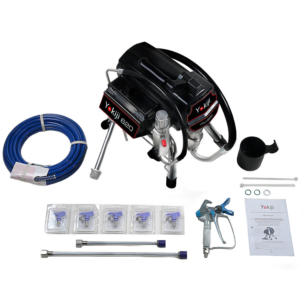 YOKIJI YKJ 620 - окрасочный аппарат для внутренней покраски стен и потолков. Окрасочный аппарат безвоздушного распыления краски предназначен для строительной покраски, внутри и снаружи, также окрасочный аппарат можно использовать для покраски деревянных и металлических конструкций красками средней вязкости. Окрасочный аппарат работает от стандартной электрической сети, забирает краску из ведра и подает ее с помощью поршневого насоса на краскопульт для безвоздушного распыления.