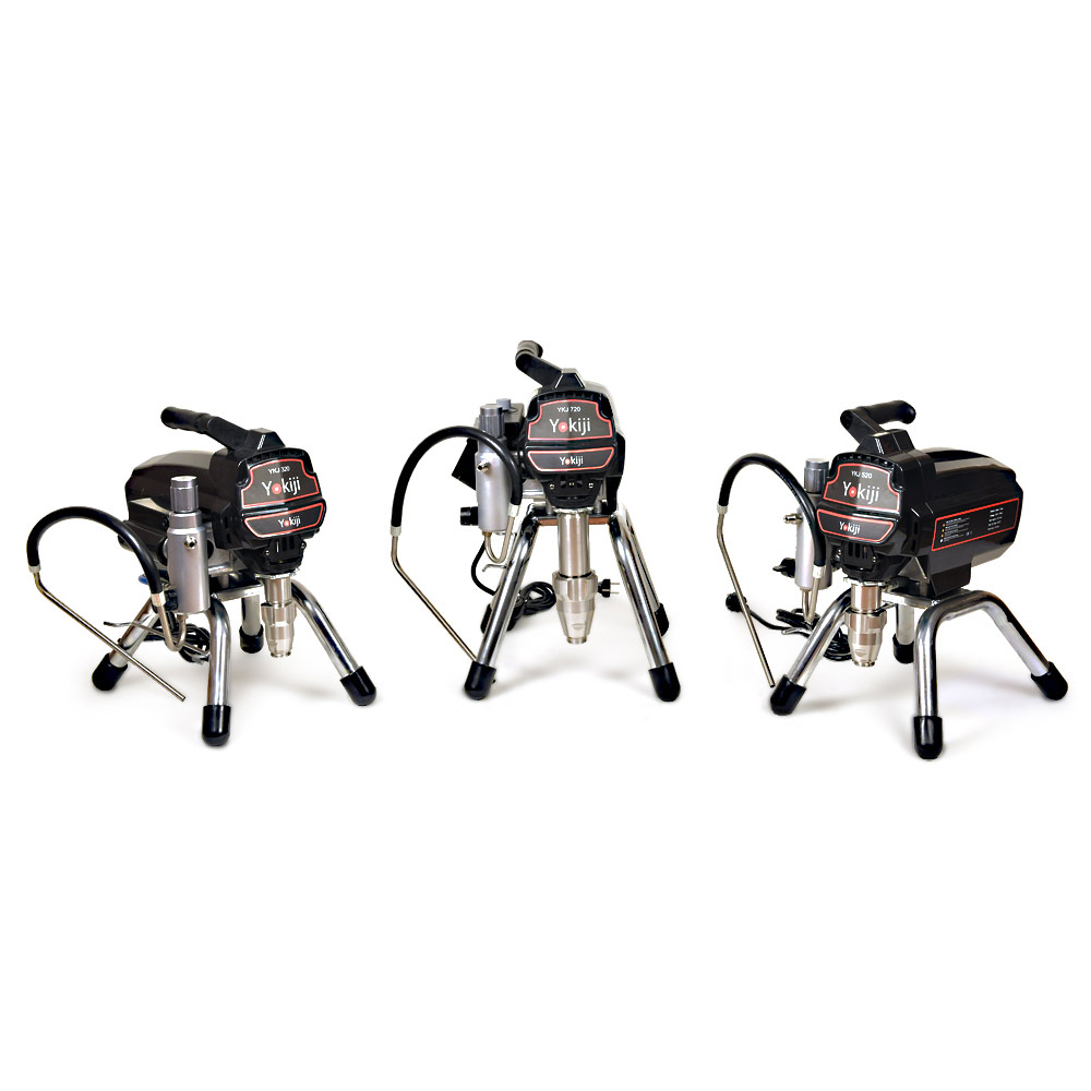 YOKIJI YKJ 720 – компактный поршневой безвоздушный окрасочный аппарат с удлиненным поршнем; предназначен для высококачественной интерьерной окраски: работает с интерьерными красками низкой и средней вязкости. Также применяется для окраски фасадов и металлических и деревянных конструкций. Аппарат работает по принципу безвоздушного распыления: материал подается от окрасочного агрегата через краскопульт для безвоздушного распыления под высоким давлением. YKJ 720 оснащен электронной регулировкой давления и дополнительным фильтром, установленным на корпусе окрасочного аппарата.