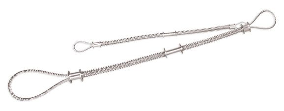 Страховочные тросики изготовлены из стойкой к коррозии, высокопрочной стали и устанавливаются при соединениях между несколькими рукавами или между рукавами и оборудованием.