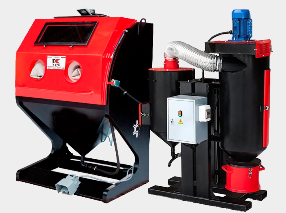 Дополнительная установка к камере, которая выполняет функцию очистки запыленного внутреннего пространства пескоструйной камеры, а также очистки, просеивания абразива от пыли, крупных примесей и подачи его под давлением в зону обработки. Фильтр улавливает пыль, мелкие частицы абразива. Благодаря фильтру и рекуператору в атмосферу подается уже очищенный воздух, а загруженный абразив может используется многократно и длительное время.
